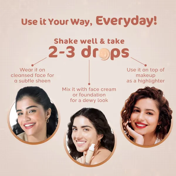 Use it alone, mix it with your moisturizer or foundation, or layer it over makeup for instant luminosity.