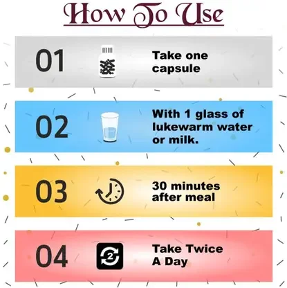 | Dosage | 1 capsule at night with lukewarm milk or water |